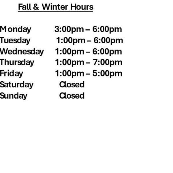 Fall & Winter Hours are currently in effect.